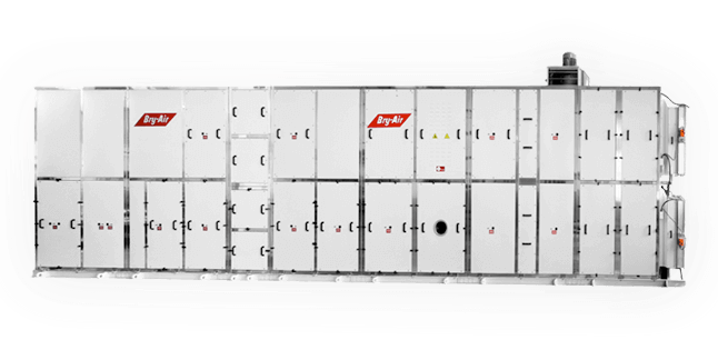 Bry-Air’s patented technology platform reduces total energy required for regeneration and cooling, improving operating efficiency in large dry room installations.